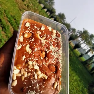 "রাজশাহীর খেজুরের শাহী পাটালী গুড়, যা সমৃদ্ধ কাঠবাদাম, কাজুবাদাম, চিনাবাদাম, কিসমিস ও সাদা তিল দিয়ে তৈরি। খাঁটি স্বাদ এবং পুষ্টির জন্য সেরা!"